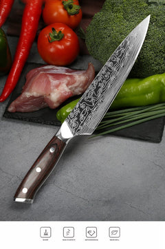 - EXQUISITE CRAFTSMANSHIP - Letcase 8 inch chef’s knife crafted from the finest super steel from German, air-blade hammered indentations experienced thoroughly tempered what strength can be more durable, ultra sharp and abrasive. The unique style kitchen knife designed for powerful chopping, crushing, mincing, slicing and dicing with ease.