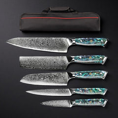 5-Piece Japanese Damascus Chef Knife Set With Roll Bag